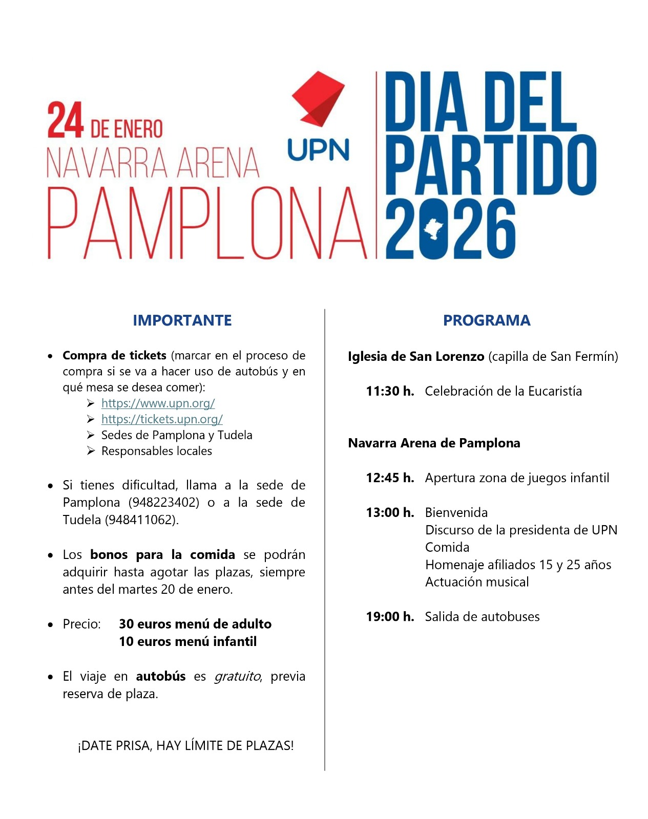 Celebración anual del Día del Partido. Un encuentro único para todos los afiliados y simpatizantes de UPN donde compartiremos una jornada llena de actividades, discursos y momentos inolvidables.